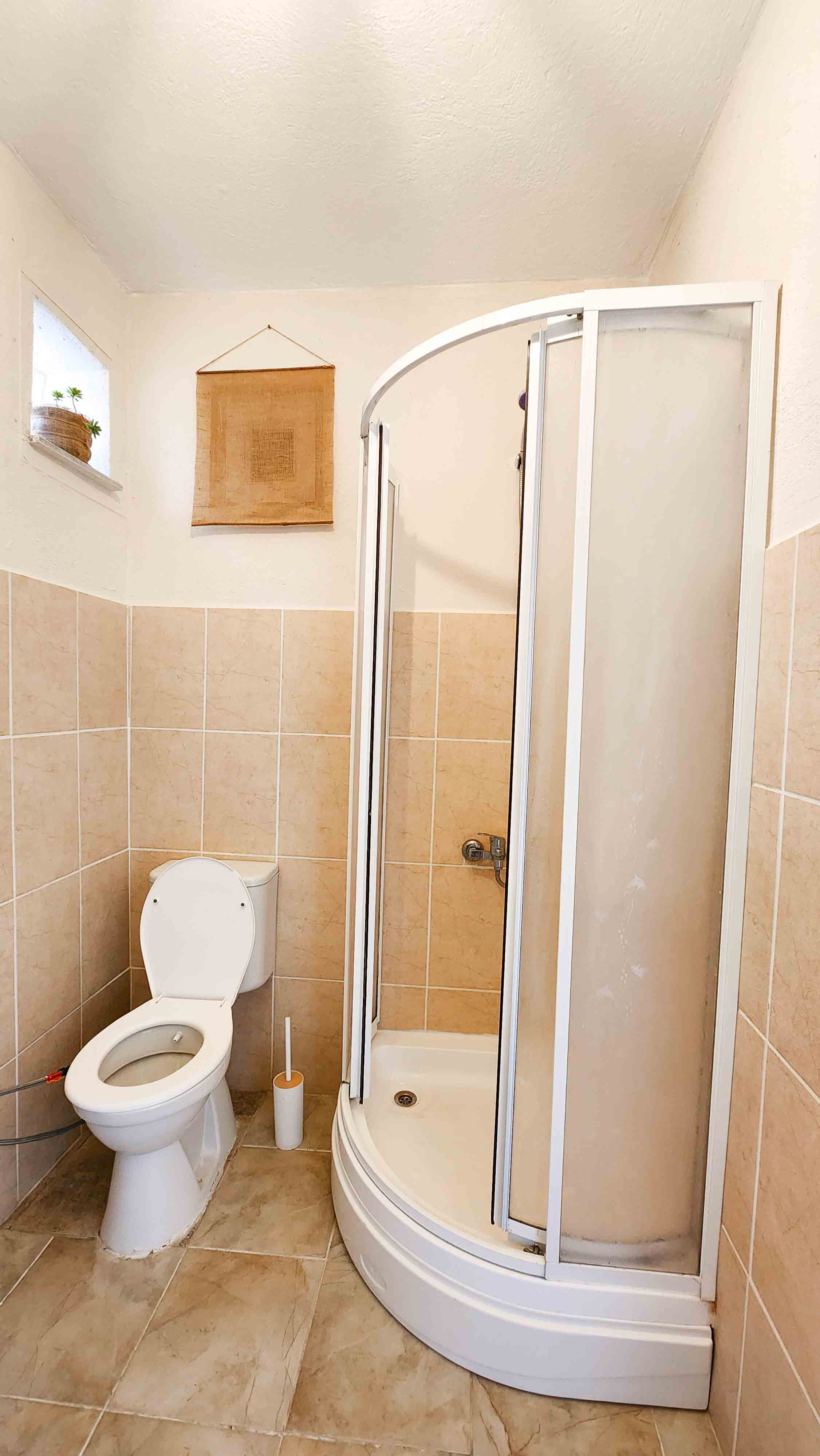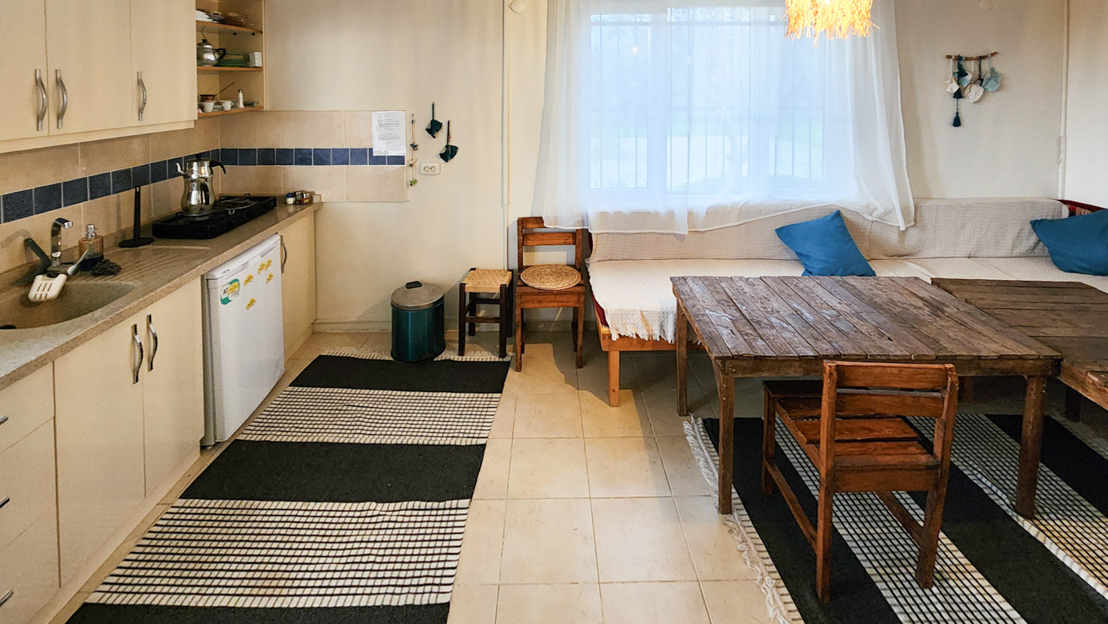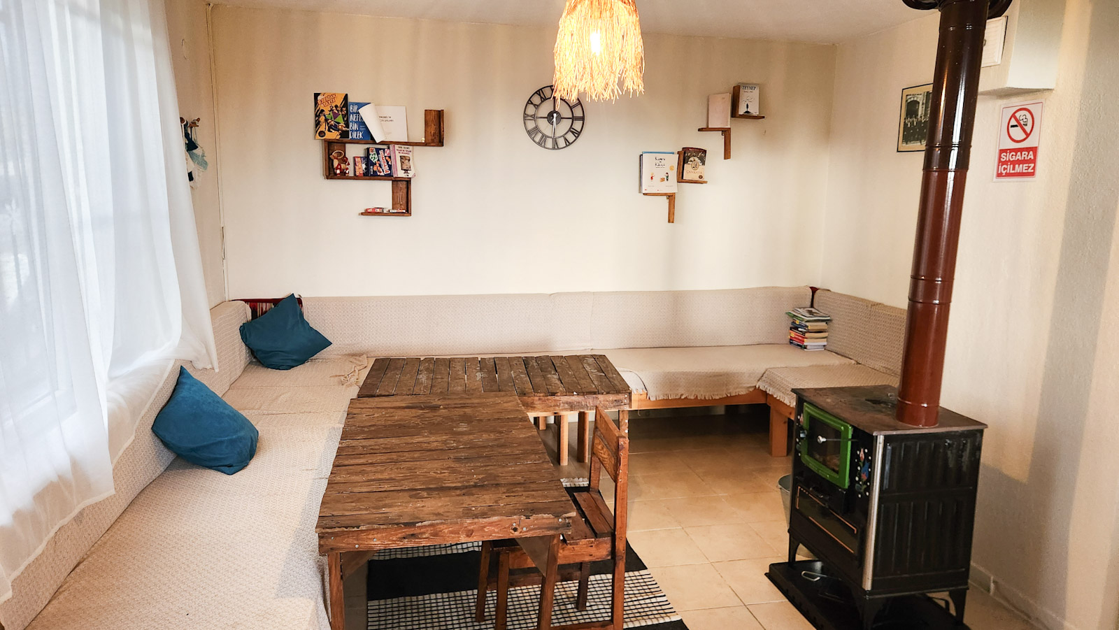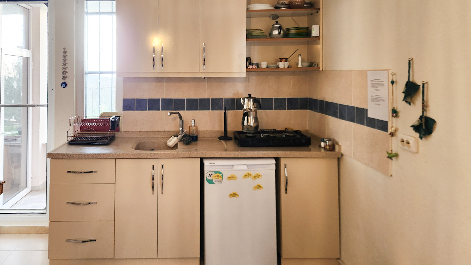 Ortak mutfak, tuvalet ve duş alanının yanında bulunuyor. Bahçe katı olması sebebiyle dışarı çıkıp girmek çok kolay olan odamızda iki kişi konaklayabilir.